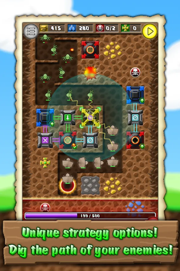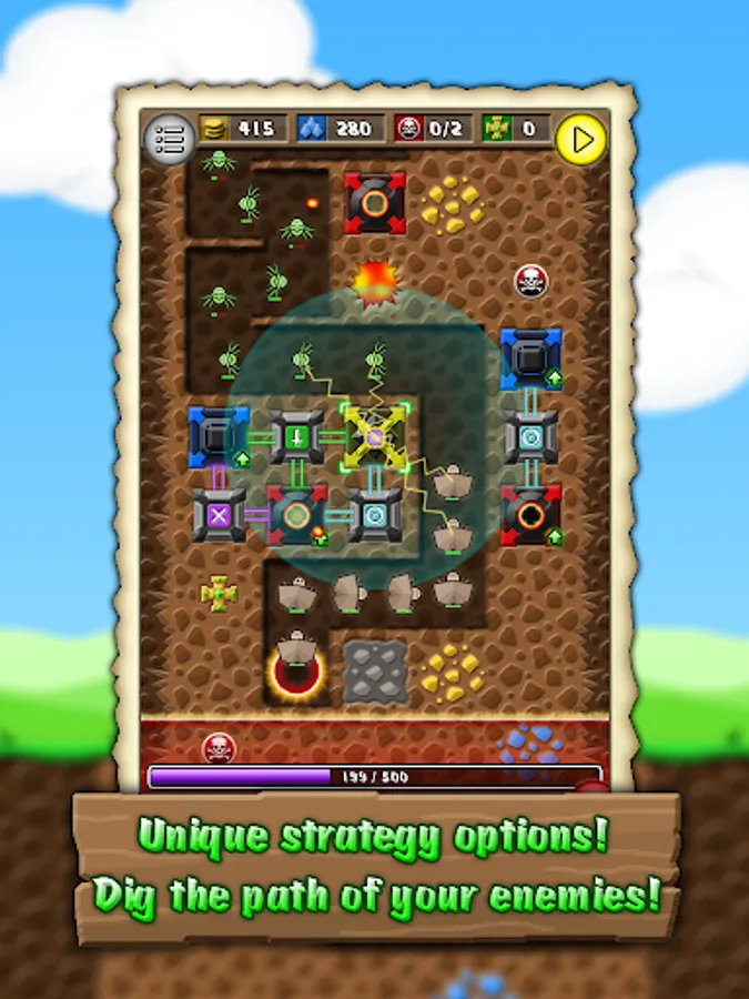 Defend your castle from the evils that lurk below in this unique strategy game! You will need to dig deep into the earth to uncover treasures and destroy the enemies threatening your castle.