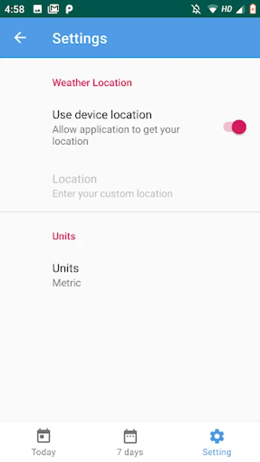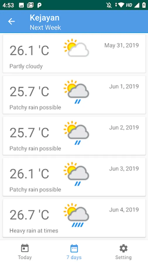 Aweather have two features for discover current and future weather. This application also can be set to current location or spesific location.
