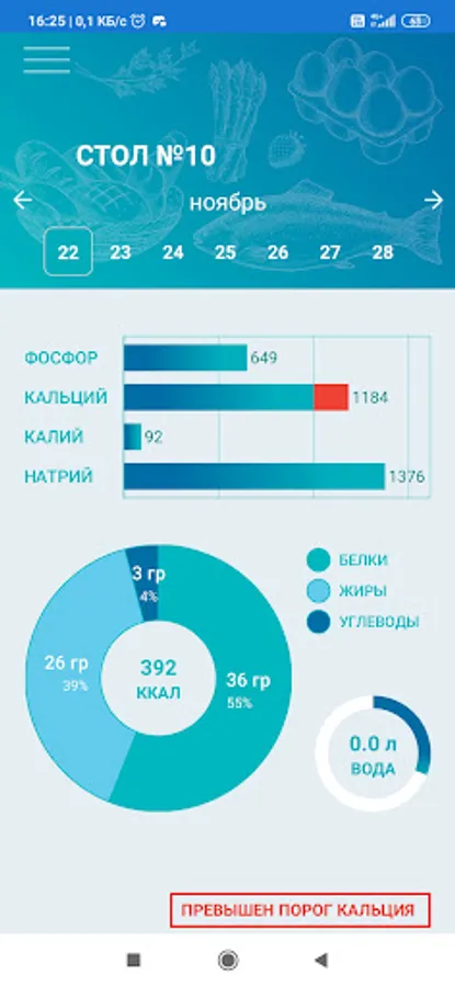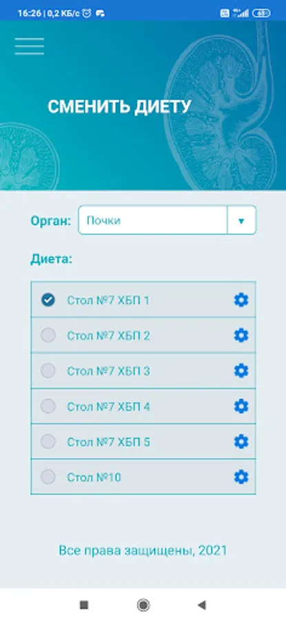 "DIET": You can make your daily menu based on the restrictions in the diet calculated according to your CKD stage. Just Click on "ADD THE DISH" and choose from thousands of productsю IMPORTANT! You can change the diet based on the your CKD stage in the main menu by clicking on the icon in the upper left corner and change the diet in the “CHANGE DIET” column).