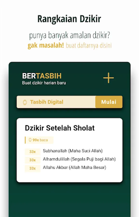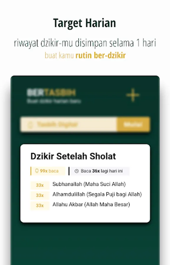 Not only that, for those of you who have a lot of dhikr practices, you can list them in the Bertasbih application, and read them in order with daily targets, it can make you more diligent in dhikr every day.