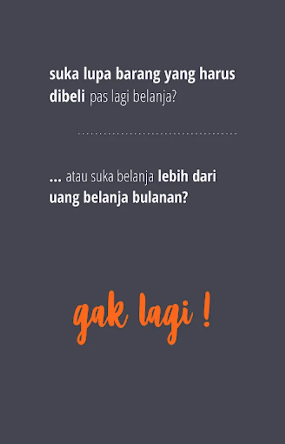 Not anymore! Kenalin CLO, Application of Goods and Prices Shopping Notes. CLO helps you to record all the items you need to buy with an estimated price that you can fill in to ensure that your shopping is not overbudget.