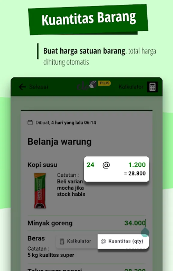 Not only that, you can also add a unit price for each item, the total price is calculated automatically! Guaranteed your shopping is anti-overbudget.