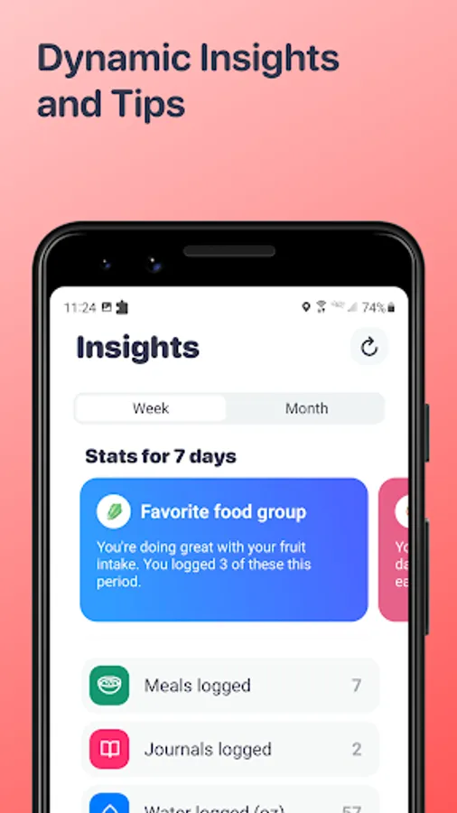 Your Food Journal also offers tips and insights as you keep logging to help you make more informed decisions each day.
