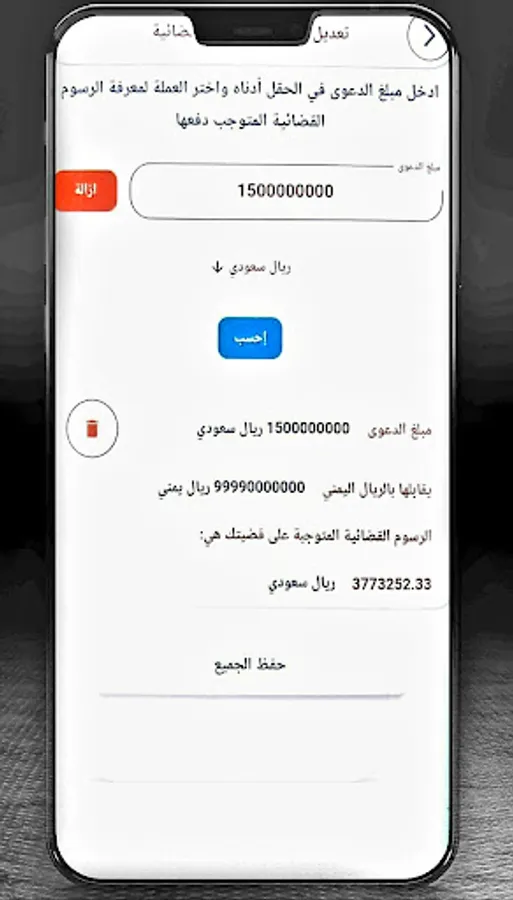 Through this section, any person, whether a lawyer or a litigant, can know the judicial fees that must be paid when submitting claims with just one click. What you have to do is either write the amount of the claim you are claiming by number and specify the currency, whether local or foreign, and the application will find the amount of fees to be paid Every minute immediately.