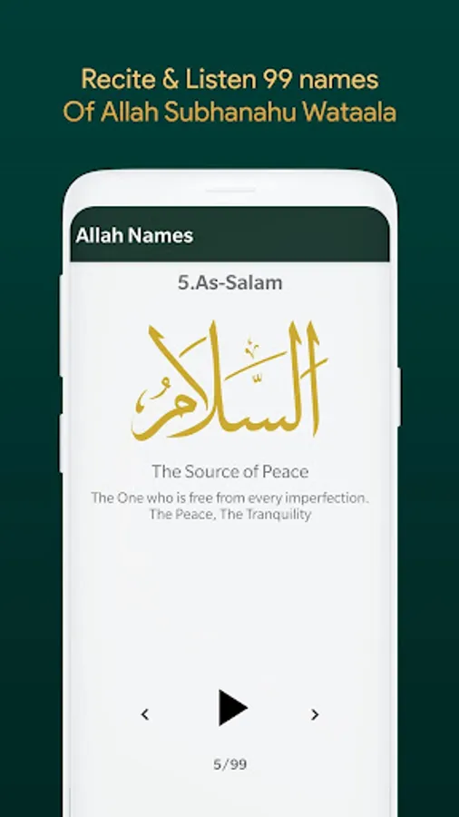 99 Names of Allah in Arabic and English with Audio & right phonetics and translations. According to tradition (hadith), there are at least 99 names of God in Islam, known as the ʾasmāʾu llāhi l-ḥusnā (Arabic: أسماء الله الحسنى) "Beautiful Names of God" (also أسماء الحسنى ʾasmāʾu l-ḥusnā "Beautiful Names").