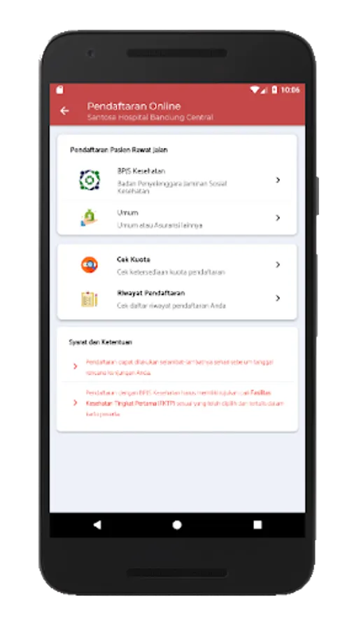 Santosa Patient is a hospital application. Santosa Bandung based on android which is intended for patients. Through this application you can access various health services and information at the hospital. Santosa Bandung.