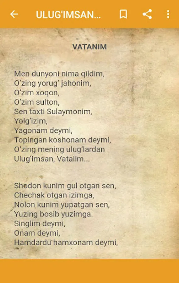 Shoir o`z ona vataniga, tabiatga va insoniyatga bo`lgan iliq hissini o`zining yuraklarni larzaga soluvchi,garchand sodda tilda yozilgan bo`lsa-da odamni chuqur o`yga chorlovchi she`rlari bilan o`quvchi qalbida o`chmas iz qoldirgan.