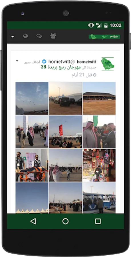 Home Tweet, which has long awaited in the recent period now back new ordering on the Google Play market, you will have the application of Twitter and admiration, participation and knowledge of news and cases of friends on a permanent basis with a specific pages, the pages prostate for companies, institutions and the reminder to pray and closer trade accounts new green brand, also will be able to chat direct with your friends and create Alhastej inserting images and video and audio clips and the selection of psychological your case to be participating with your friends, and also provides an application Hom tweets on the possibility to respond to the comments and post tweets on the page and personal notices subscriptions your mail, we hope that we might receive you like it.