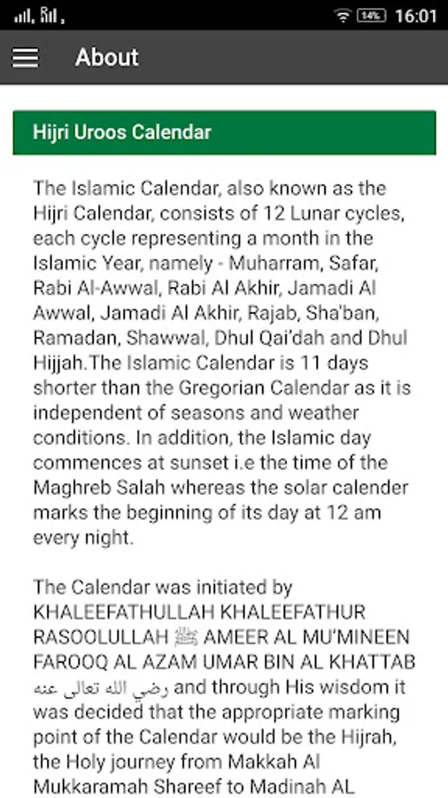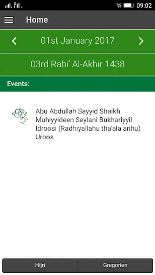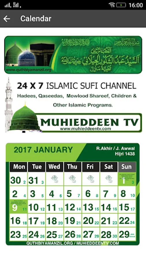 This calendar, equipped complete with a Hijri to Gregorian conversion tool, was created primarily as a reminder to all of our Ahle Sunnah Wal Jama’ah brothers and sisters of the important events relevant to our Aqeeda – The Urs Mubarak and Holy Birthdays of the Prophets And Messengers of ALLAH ALAIHUM ASSALATHU WASSALAM and the Beloved AWLIYAULLAH AL KIRAAM, amongst others. This enables us to rejoice and celebrate the Lives and Attributes of these Holy Men and Women with various forms of recitation and praise, in a timely manner. It is through the Knowledge, Wisdom and Guidance of these Beloved People of God that we are able to proudly proclaim membership of the one and only Aqeeda preached by RASOOLULLAH ﷺ - The Aqeeda of the Ahle Sunnah Wal Jama’ah, Thus, it is of utmost importance to remember and praise Them on the appropriate dates not only as a benefit for ourselves, but also for our Kith and Kin and for the sake of revival and continuation of these Noble Practices for the coming generations, as it is these Noble Practices that will bring us close to the Holy Feet of RASOOLULLAH ﷺ and in these Noble Practices lies protection from the evils of the deviants.