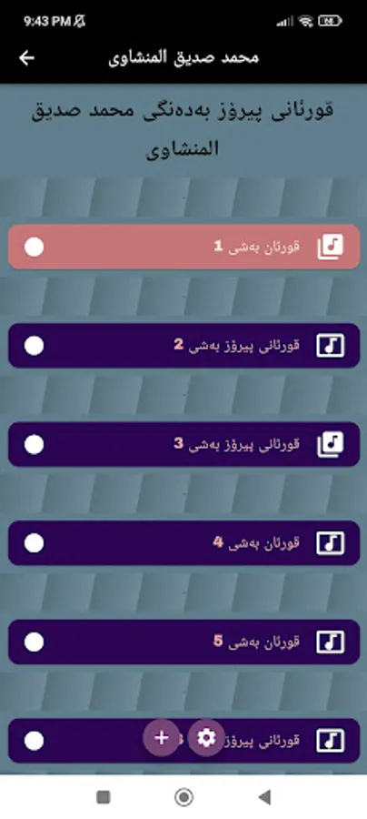 سەرەتا بەناوی خودای گەورەو میهرەبان خۆشە ویستان بەرنامەی قورئانی پیرۆزم بۆتان هێناوە بەشێوەکی ئاسن و جوان بەدەنگە ناوازو زوڵاڵو خۆشەکەی محمد صدیق المنشاوی قورئانی پیرۆزمان تێدا بەش بەش کردوە تا وەکوی تۆی بەرێزی گوێگر زۆ نەگەڕێت بەدوای ئەو سورەتی کە دەت هەوێت بەزوترین کات بیدۆزیوە
