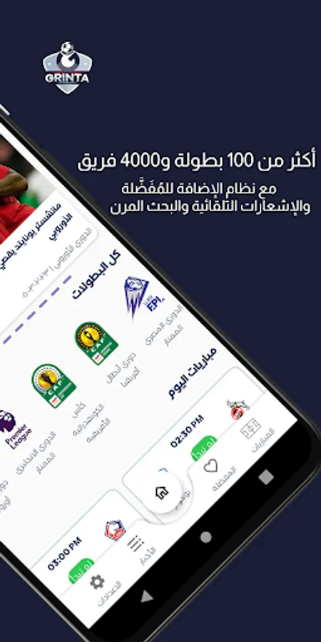 Grinta is a sports application where you can find more than 100 leagues and competitions, and you can follow the news, live scores, results, fixtures, standings, statistics, lineups, top scorers, and more.