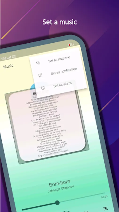 > Set song as phone alarm tone