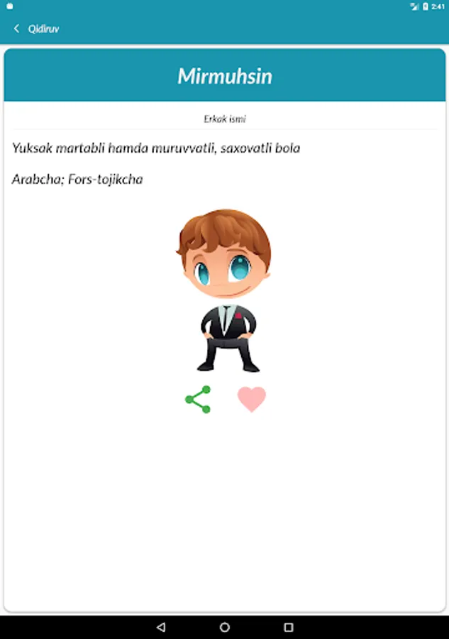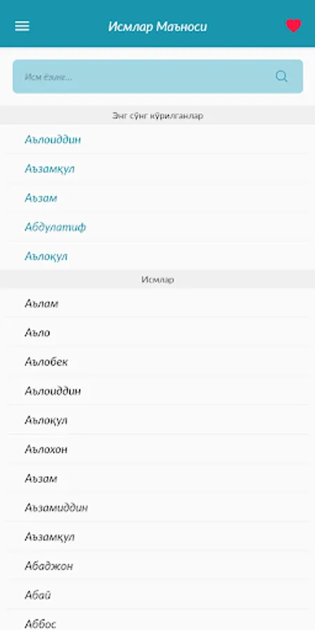 Фарзанд кутаётганлар учун жуда ҳам фойда бўлувчи дастур. Дастурни кўчиринг ва фарзандларингизга гўзал исмлар танланг.