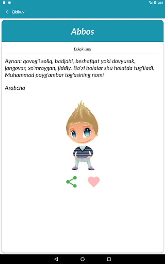 Farzand kutayotganlar uchun ham juda ham ma'qul keladigan dastur. Ko'chiring va farzandlaringiz ismi eng go'zal ismlardan bo'lsin.