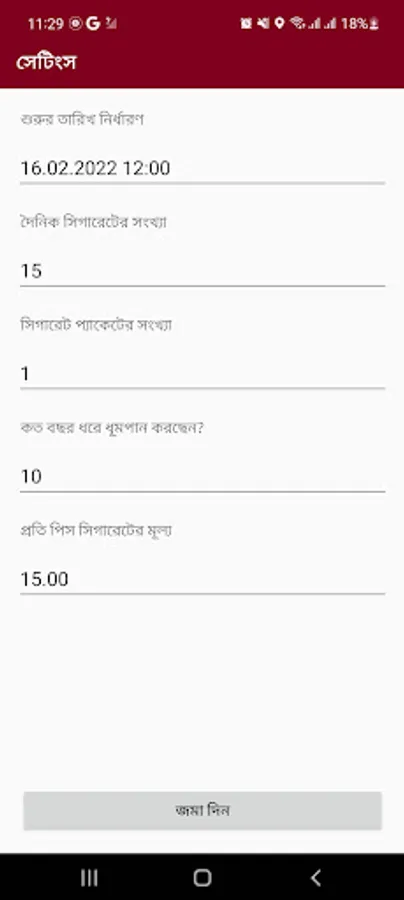 অ্যাপটি আপনাকে সিগারেট ছাড়া কতটা সময় কাটিয়েছেন তাও আপনাকে সক্ষম করবে এবং এটি আপনাকে ধূমপান না করে কতটা জীবন ফিরে পেয়েছে তাও জানাবে।