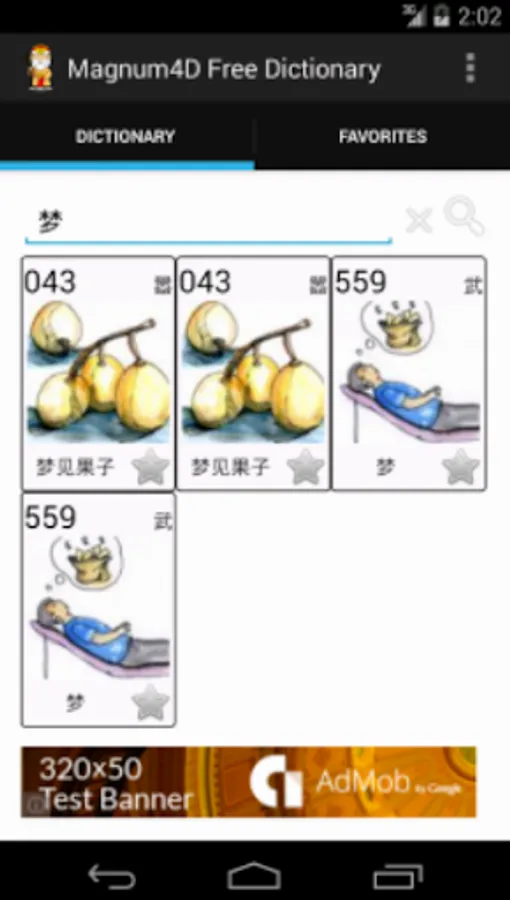 Ini adalah kamus Magnum4D. Anda boleh mencari sebarang muncul dalam mimpi anda, atau nombor yang wujud dalam kehidupan seharian. Nombor ini boleh menjadi sebagai 'lucky number' dalam Magnum4D atau Toto. Harap anda menikmati app ini.