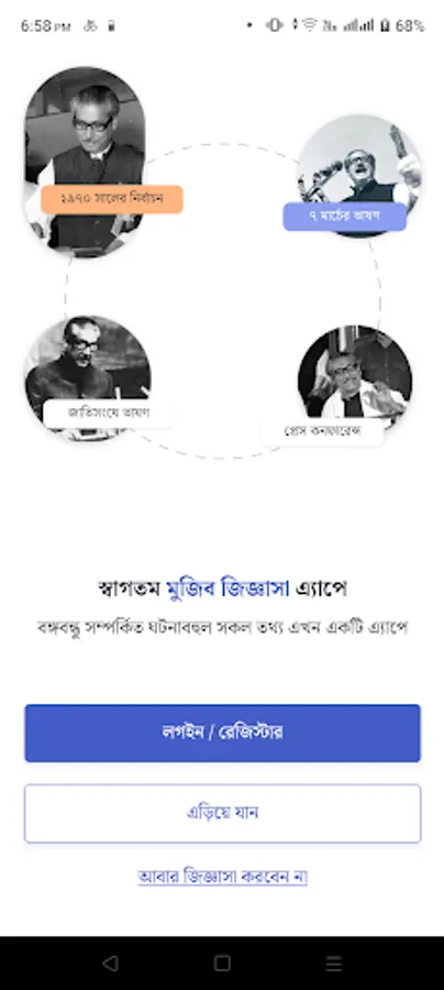 We are thrilled to present the brand-new Mujib Jigyasa app, which is packed with exciting features to help users learn about the father of the nation, Bangabandhu Sheikh Mujibur Rahman.