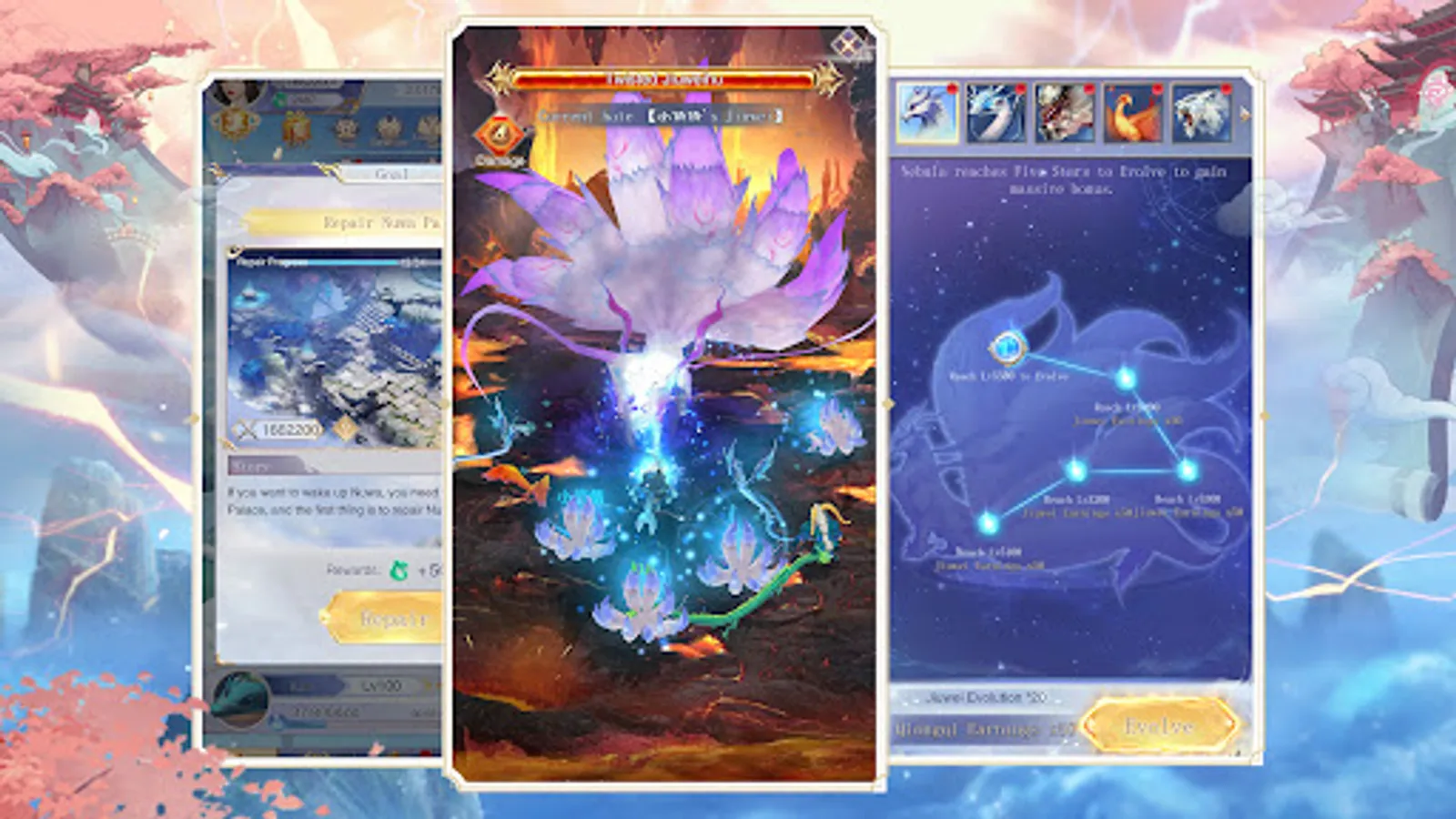When you reach the certain cultivation, you can fight in the League of Gods. Collecting Nvwa stones and rebuild the Nvwa Temple.