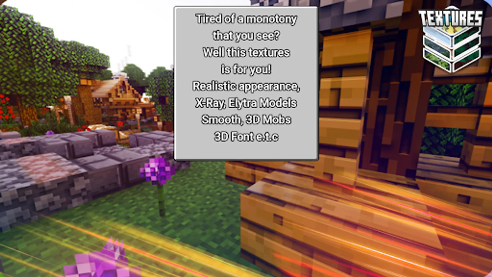 Texture packs for Minecraft pe will make your world more beautiful and improve rendering: reflection map, shadow map, normal maps, HD maps. Also, any texture is now available to you, mods for animals, birds, cars, furniture, varnish block, modern house, weapon mod, tail mod, TNT, buildings, wings, flight, Vanilla minecraft and many others are available. With realistic textures, you will see much more beauty in the world of Minecraft PE than before.