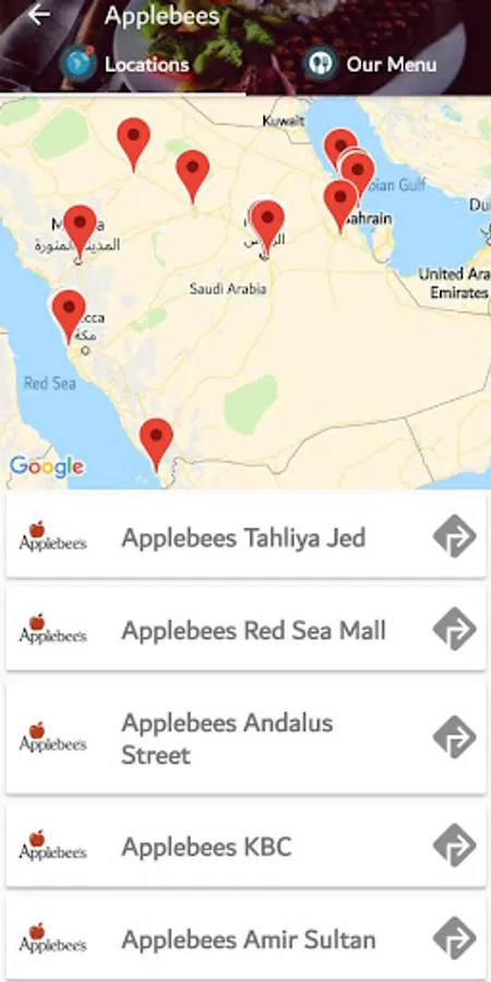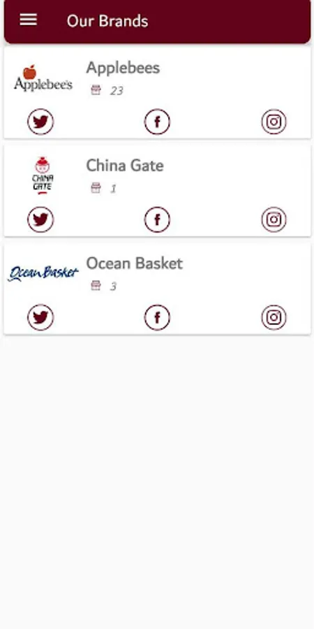 4. The application provides Members with all the Restaurant Locations of Applebees, China Gate and Ocean Basket.