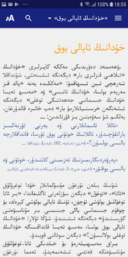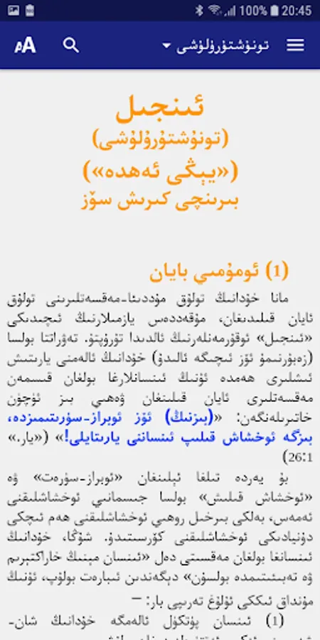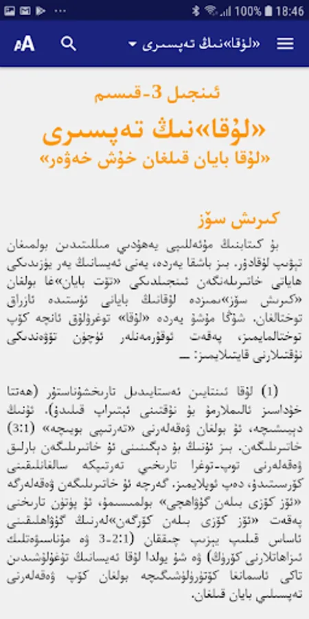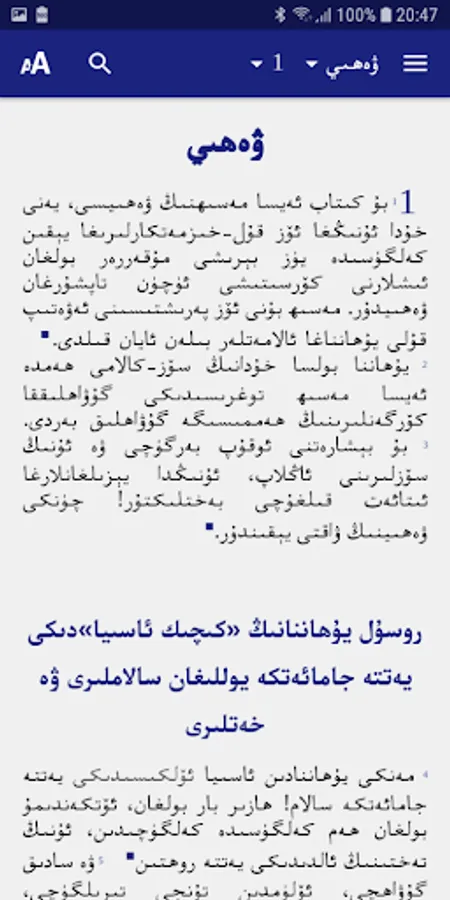 This “Kalam” APP makes available to the reader the Uygur language “Kalam” Bible translation in an easy-to-use form. It is offered free in 4 different language scripts; the Arabic script used by Uygur people in NW China (Xinjiang), the formerly used Latin script (“yengiyezik”), the Cyrillic script used by Uygur readers in Kazakhstan, Kirghiziye and Uzbekistan, and also the “phone script” recently developed for easy cell-phone communication (using the 26 letters of the English alphabet).