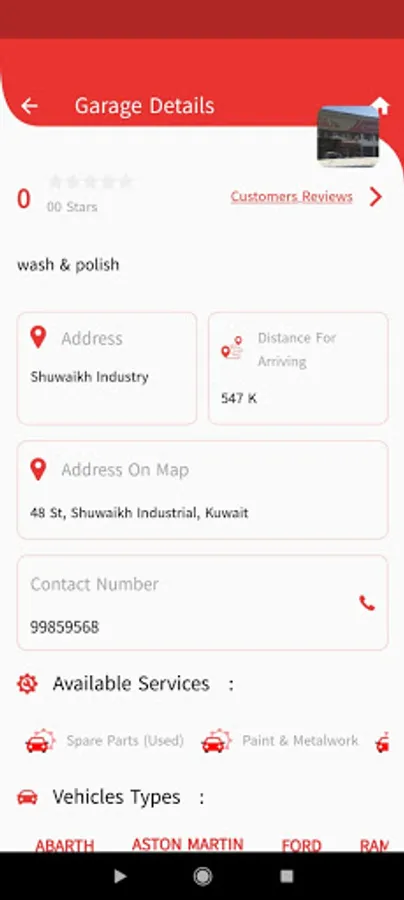 The garages in وينه weenah app are displayed from nearest to furthest, and the application allows customers to evaluate their experience with the garage as well as it shows the reviews and experiences of previous customers to the user.