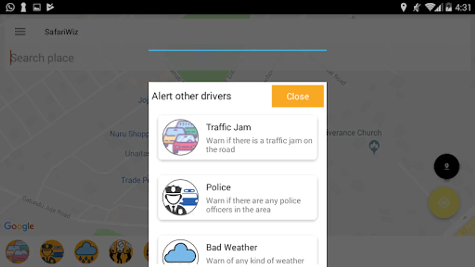 Be updated on what is happening on the road with SafariWiz. SafariWiz updates you on road accidents, traffic, terrible road conditions, bad climate, police, car crashes, and essential trip time service providers such as Garages, Gas Stations, Ambulance services... in real-time. On the off chance that traffic is awful on your course, SafariWiz is there to save you time.