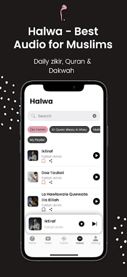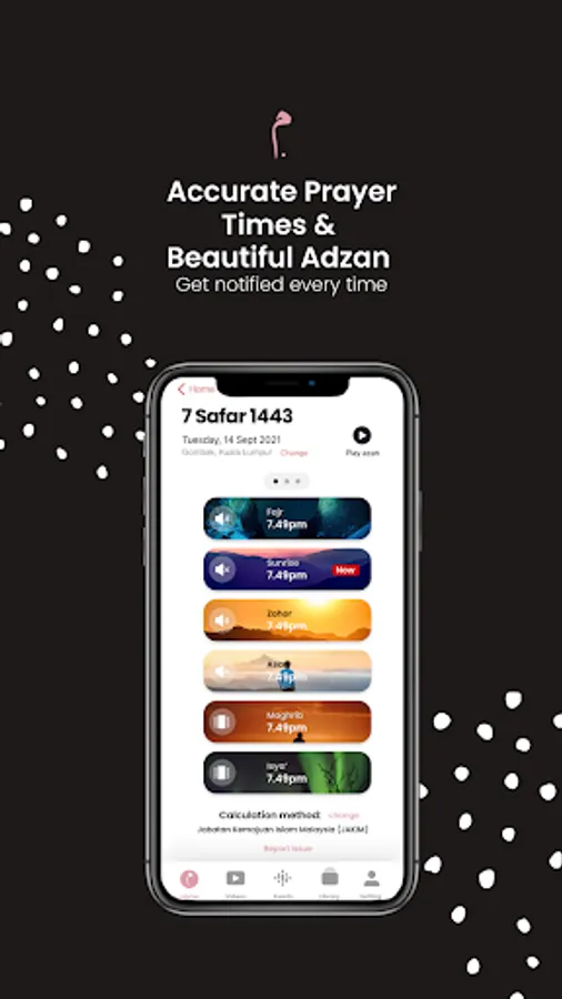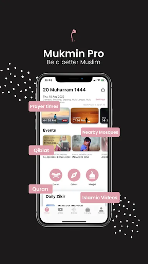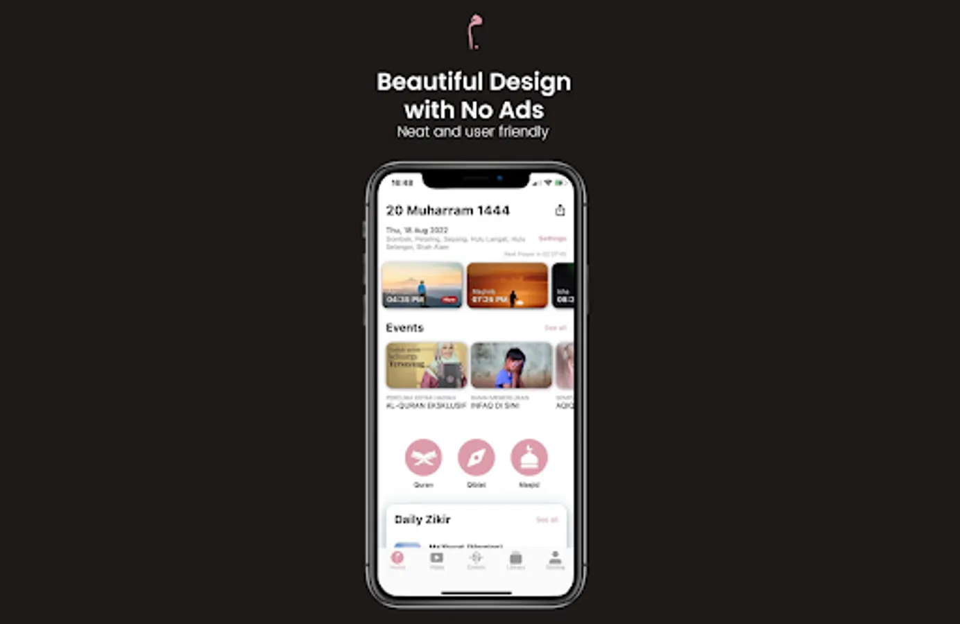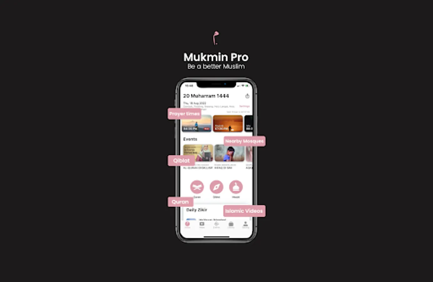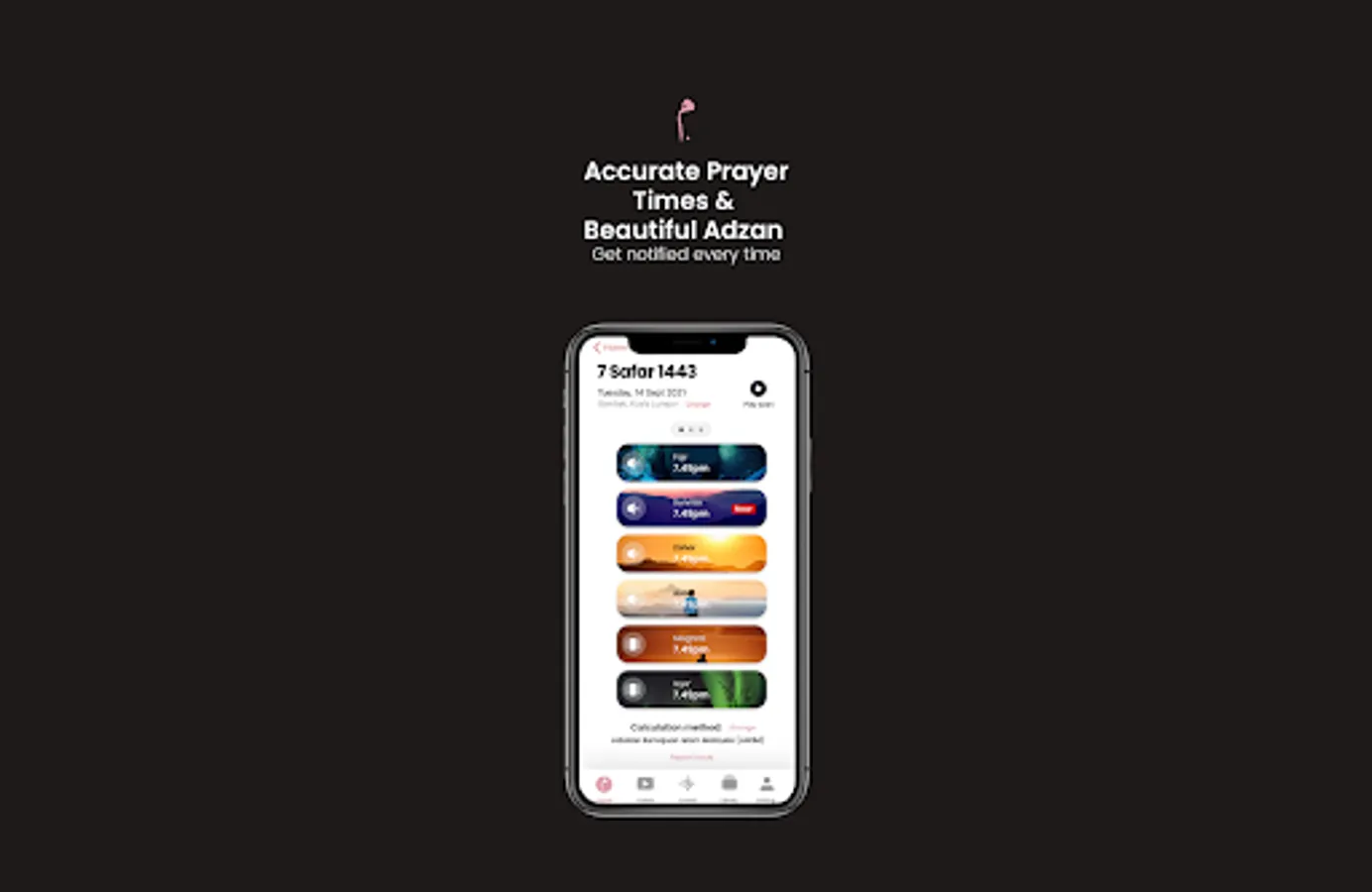 Aplikasi mudah alih Islam percuma yang menawarkan skop gaya hidup Islam harian melalui alat keperluan umat Islam iaitu Waktu Solat, Qiblat yang dipercayai, dan video Islamik menghubungkan umat Islam seluruh dunia.
