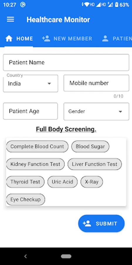 HealthCare monitor store information about complete health checkup or diagnostic scan of your entire body including heart, kidney, liver, lung to assess your current health status & to screen you to know if you have any apparent warning signs or if any abnormalities lying inside your body. Health checkup can ring the bell early, if there are any symptoms of fatal diseases like cardiovascular diseases, respiratory diseases, cancer, diabetes, high blood pressure, digestive Diseases, etc.