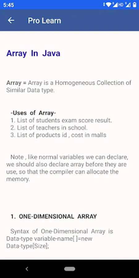 Pro Learn application is for student who where from technical or non-technical background. if they want to learn programming language like java, advance java and how to develop android app then they can easily find all notes in our Pro Learn app. Notes is written with practically implementation of programs and we have develop some web application , android application also. According to our web application , android application development we write a notes in simple way so, that everyone can understand and implements.