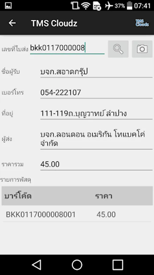 TMS Cloudz App apps function for scanning delivery system in combination with TMS Cloudz.