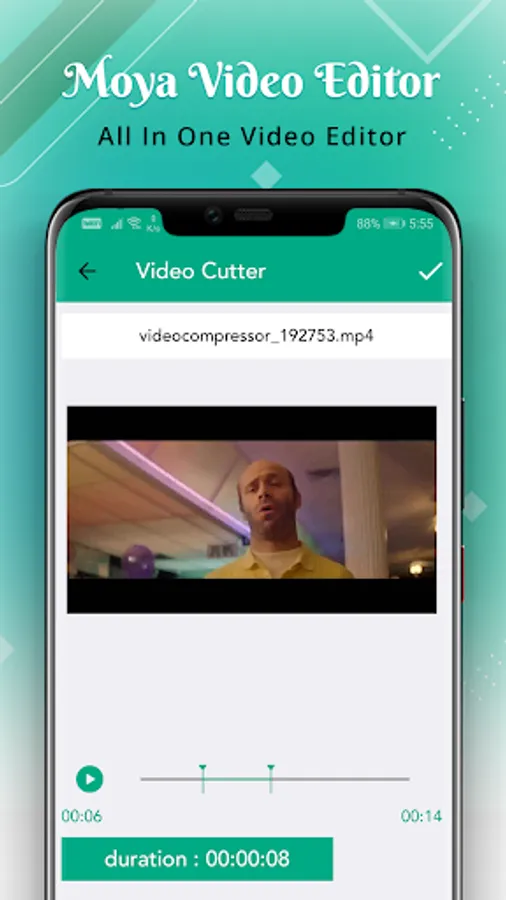 Video Cutter Tools Cuts Video With Simple Steps And Save File to Your Phone. Cuting Video With Selected Time Intervals As You Like With Same Video and Audio Quality.