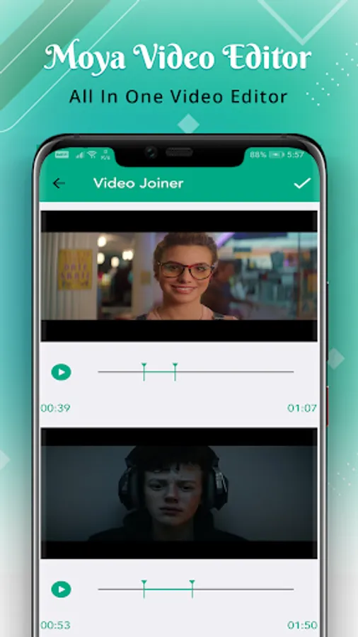 Moya Video Editor Simple But Powerful Video Editor, Make Video Edit on Your Device So Easy. Selecting Photos, Adding Filters, Text and Music, Instantly Finish Your Own Video.