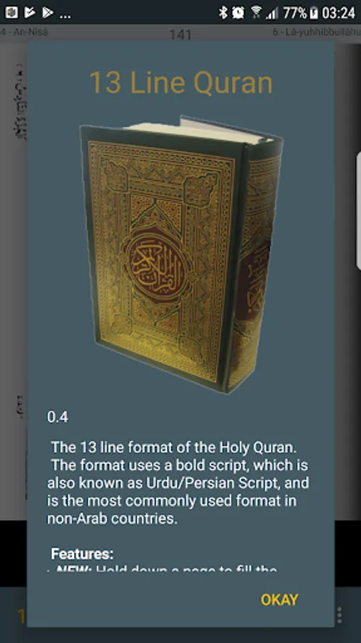 Two Page Layout. Drag the page horizontally to see two pages side by side just like a printed Quran. Touch a page to turn.