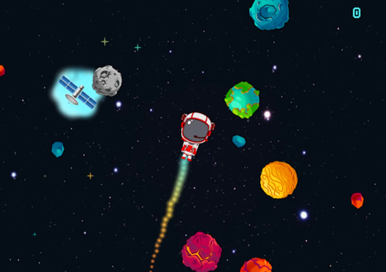 Help astronauts to collect lost satellite in space. In its mission to collect satellites, many space objects become obstacles. Help astronauts are to pass through, don't let astronauts hit the space object. The more satellites collected, the higher the score obtained. these points can be used to open other astronauts characters with their respective strengths.
