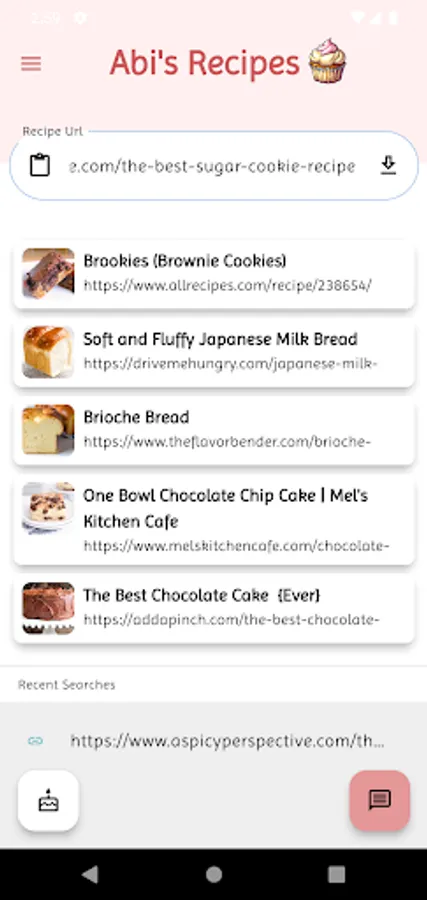 Click the share icon while on any recipe website and tap the "Abi's Recipes" logo in the share menu. The app will automatically parse the link and show you the ingredients and instructions - no need to copy and paste!