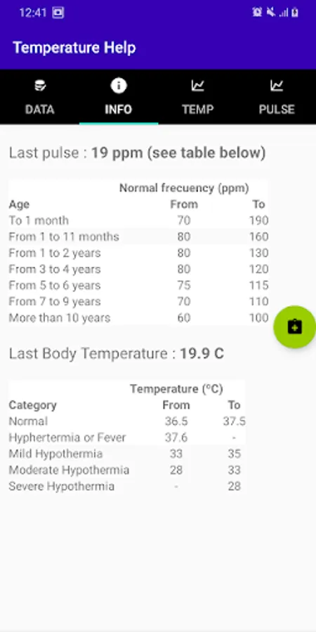Temperature Help is a utility to manage your PULSE and TEMPERATURE measurements.