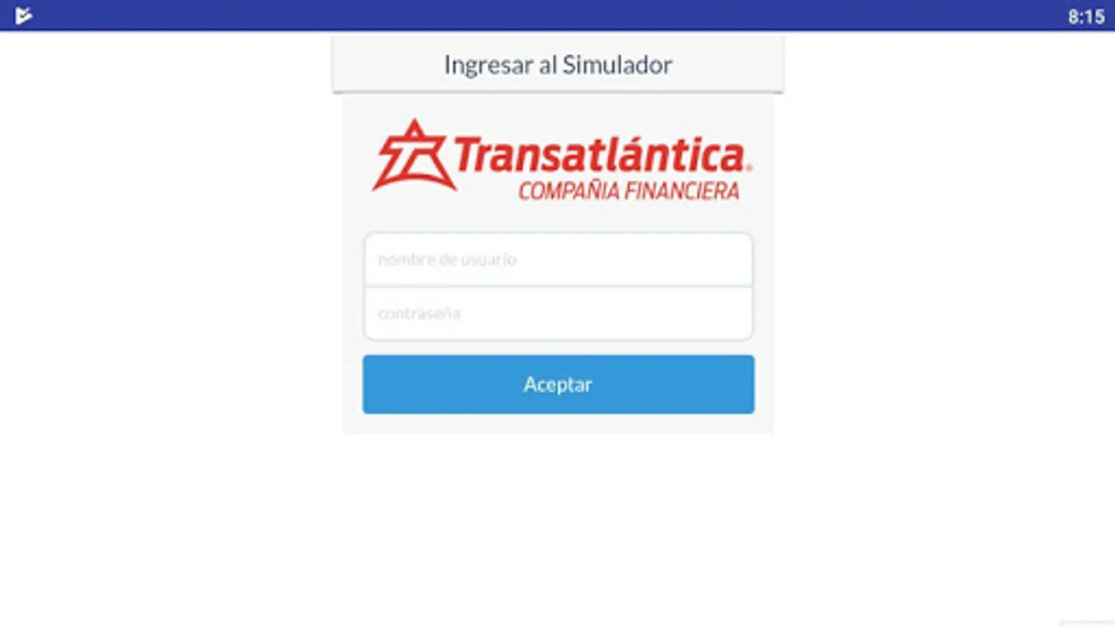 Application created by Transatlántica C.F.S.A., Entity regulated by B.C.R.A. to carry out loan simulation according to the established lines. As of the date of the date, Personal Loans and Automotive Factoring can be simulated. To access the application, the corresponding papers must be signed with the Entity.