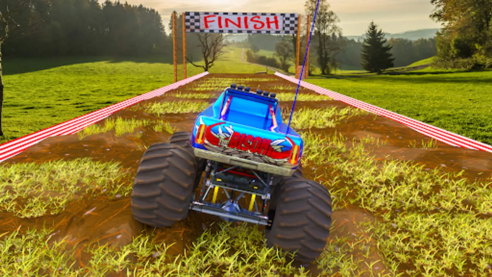 Extreme Muddy Monster truck game challenges your offroad driving skills on dirt tracks with racing opponents.