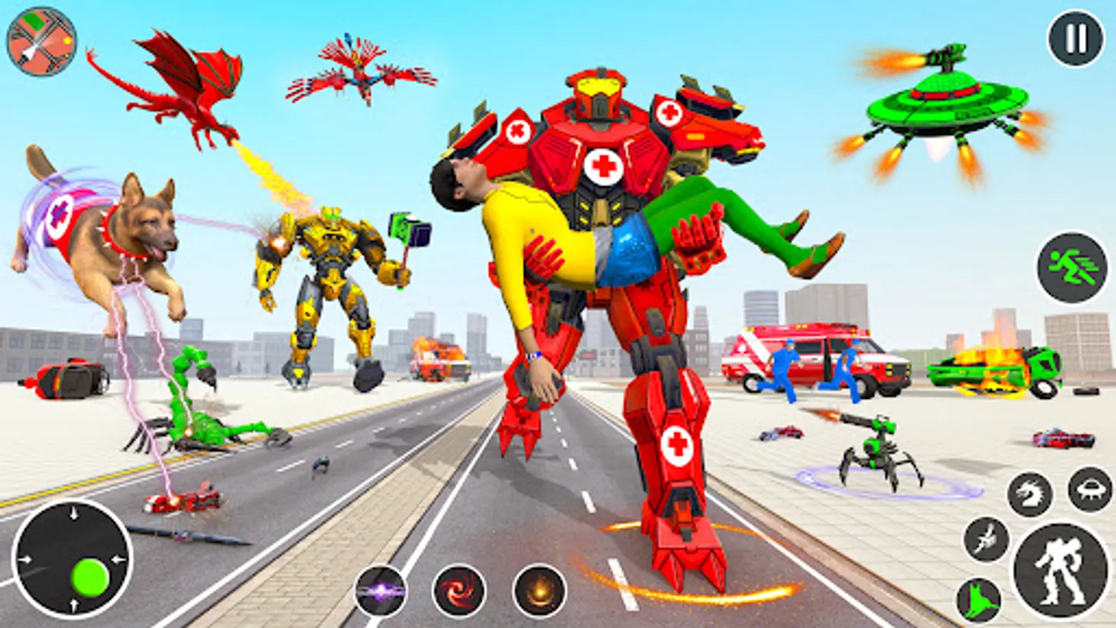 - Experience flying ambulance with car transforming robotics Ambulance Transform Robot Game is available on google play console so don't forget to download the most thrilling ambulance robot car game