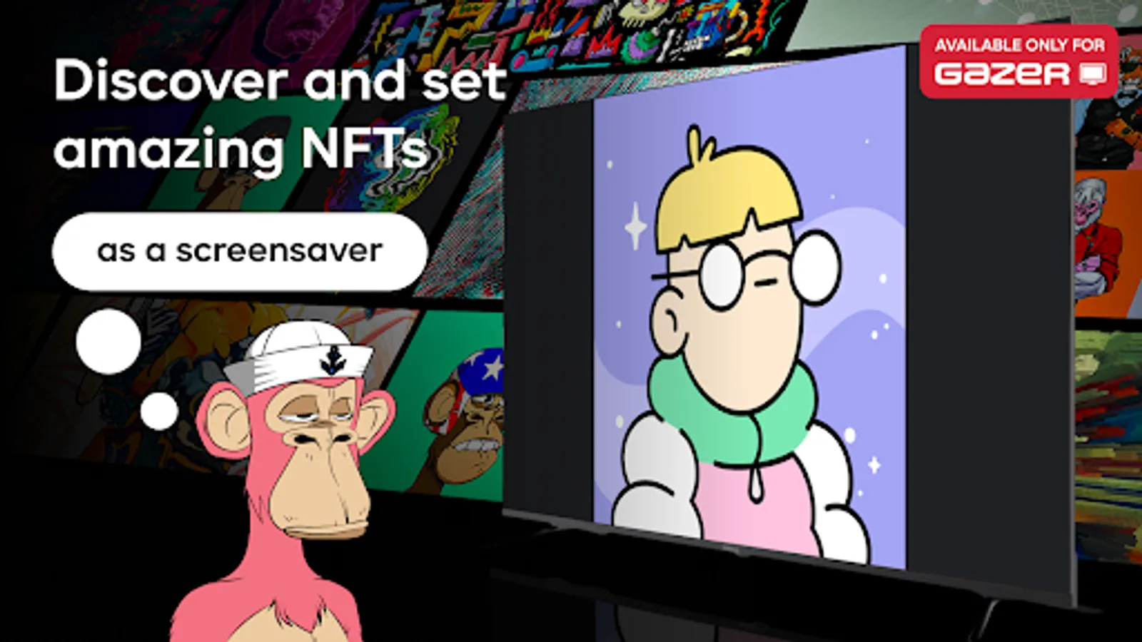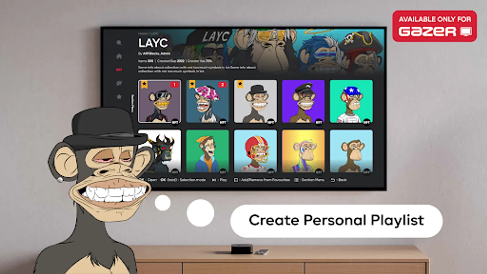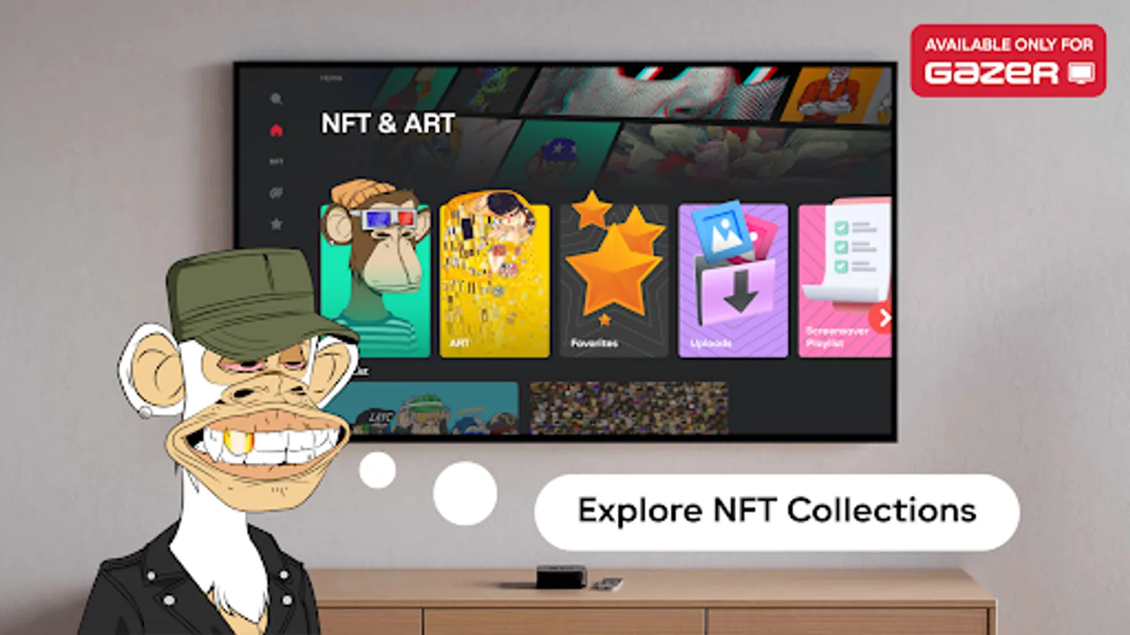 With Gazer Multiart you can turn your Gazer android TV into an amazing piece of art. It is a free and cool app that offers you a wide selection of thousands of NFTs divided into categories to make your screen look extraordinary.