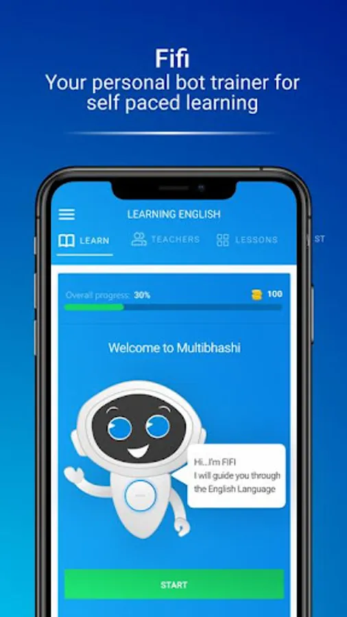 Our chatbot FIFI who will assist you in language learning! You can chat with her in the target language, answer her questions, look for answers in the lessons available on our app, etc. She makes learning easy and interesting; one need not go through the boring language learning books.