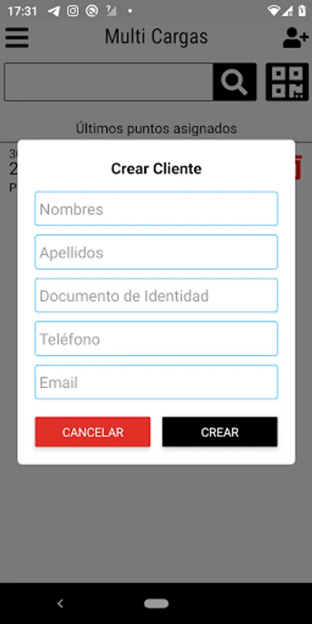 - Search for clients by name, identity document, telephone or client code (QR)