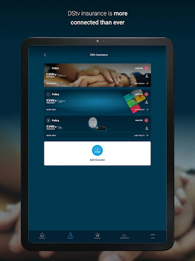 Insure your DStv decoder and manage your claims with ease using the MyDStv App.
