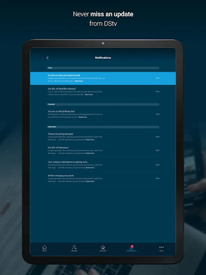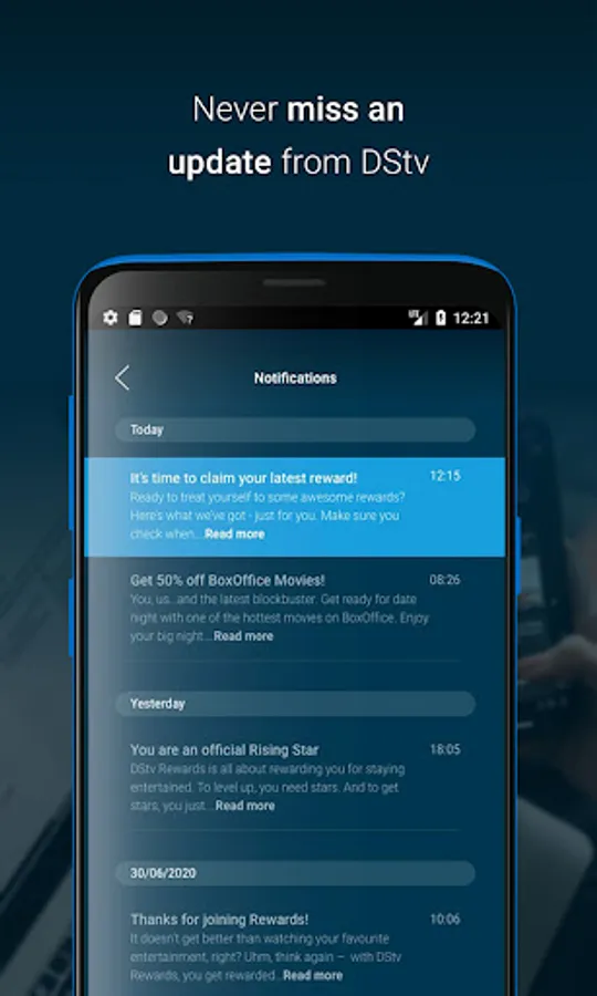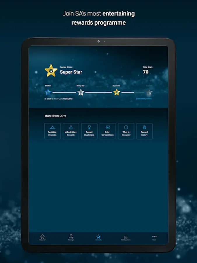 Get access to food and retail vouchers, hotel stays and much more monthly. Enter exclusive competitions, win experiences and get BoxOffice movies on us. We also have free upgrades and Showmax discounts up for grabs. Look out for app-only DStv Rewards!