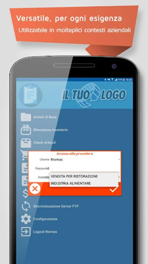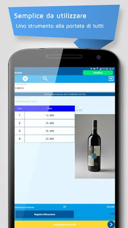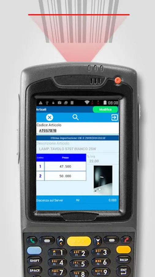 The entire portfolio of products on your Tablet [complete master data ✦Informazioni, ✦Situazione stocks broken down by lots in deadline order, ✦Immagine Article reduced and full page, ✦Codici synonyms for decoding bar codes]