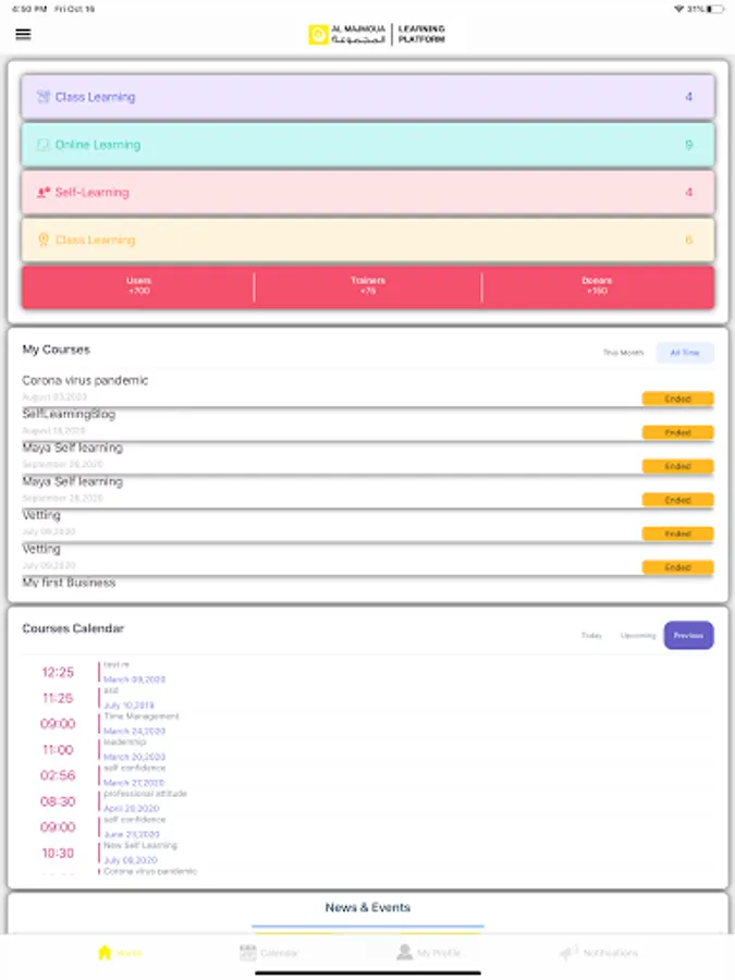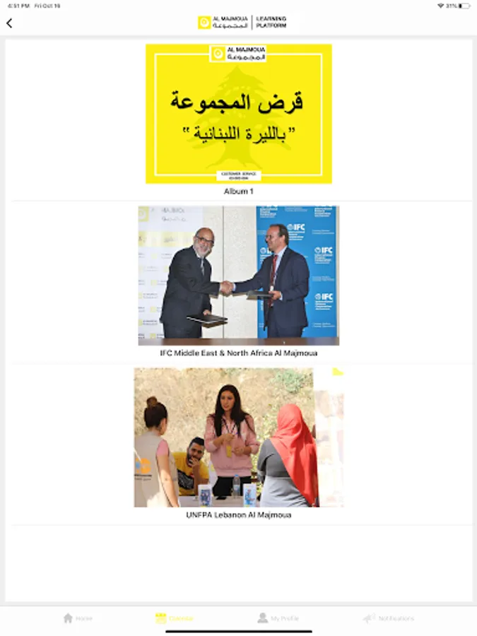 Al Majmoua E-Learning Platform is a result of years of experience and success of Al-Majmoua team in building capacity for its staff and industry. This platform is a digital transformation of learning helping people jump to the next level of their potential. This platform represented by a set of interactive online services giving opportunity to Employees in Micro- finance institutions, NGO’s / INGO’s and other companies in different countries in Arab Mena Region to easily access a variety of learning tools and resources for individual improvements that will achieve a return on investments on personal and institutional levels.