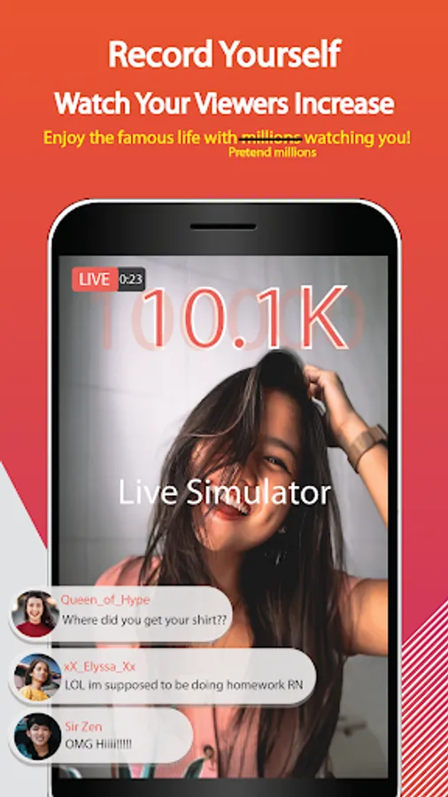 Live Sim is great for improving your vlogging skills! App features DAILY social media video challenges! Recordings are completely private! Feel loved with millions of viewers and simulated comments with this best video editor! Great for pranking friends! Best video maker where you can pretend to be Insta famous or Top Tuber. Use the video for apps like free snack video and amuse your daily viewers.