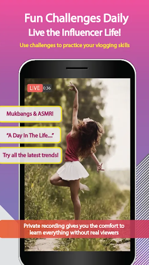 Its a platform to practice being a vlogger and excel in camera confidence! Try out all the latest social media challenges such as Youtube mukbangs, beauty tutorials and Tiktok dances with this video vlog style movie maker simulator. You can even create fun snack video for your viewers. New challenges featured DAILY on the App! Watch your viewers increase constantly!! Livestream video editor gives you a realistic experience with fun comments flowing in a private video recording!. If you’re dreaming to be a digital influencer then practice and perfect your vlogging skills and create fun videos and movies with this best video maker!