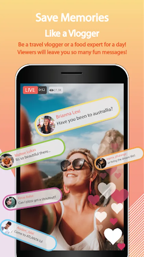 Capture memories from vacations as if you are a travel vlogger! Turn all your memories into vlogs like a Youtuber!! The vlogs will feel like a cool livestream video filter and is a fun snack movie recorder to share with all your friends!